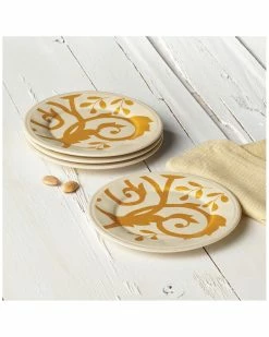 Flash Sale ✨ Rachael Ray Gold Scroll Set Of Four 6.9in Appetizer Plates Home Dinnerware 💯