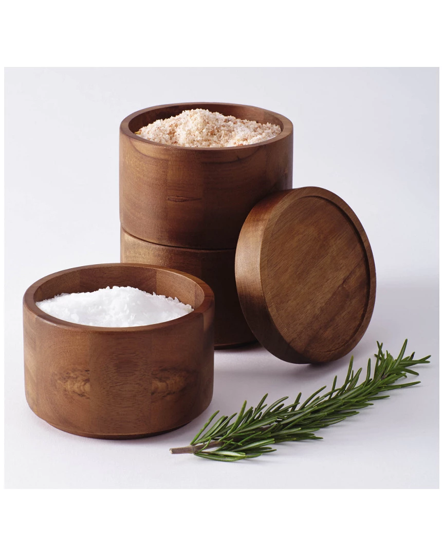 - The salt box is distinctively crafted from beautiful acacia wood in a natural tone