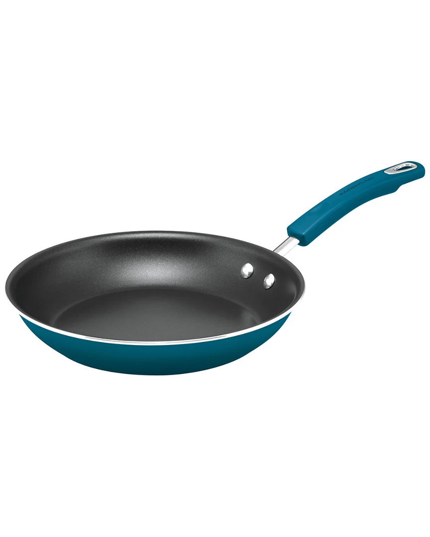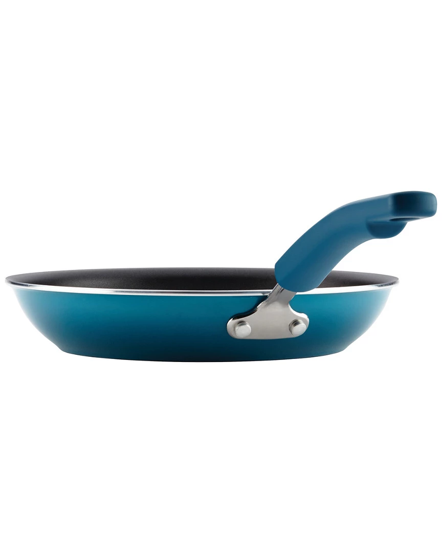 - Design details: Reach for this Rachael Ray Classic Brights Hard Enamel Aluminum Nonstick 11-Inch Skillet for making fun dishes any time of day; The sturdy construction of this super-functional frying pan from Rachael Ray offers outstanding durability and heat distribution, so foods like turkey bacon strips or scrambled eggs cook evenly. A hard enamel exterior finish features bold color to add flair to the stovetop. The grippy handle is rubberized for comfort and dual riveted for strength, and the pan is oven safe to 350F; This colorful nonstick skillet is a great addition to the rest of the clever and practical kitchenware and cookware from Rachael Ray. The skillets long-lasting nonstick interior releases food effortlessly and makes cleanup a snap, ideal for searing a sirloin steak or preparing Rachael’s Shroom and Snap Pea Saute. The The grippy handle is rubberized for comfort and dual riveted for strength, and the pan is oven safe to 350F; Whether making a thirty-minute meal or cooking a breakfast for family or friends on the weekend, this Rachael Ray Classic Brights Hard Enamel Nonstick 11-Inch Skillet is great for everyday use