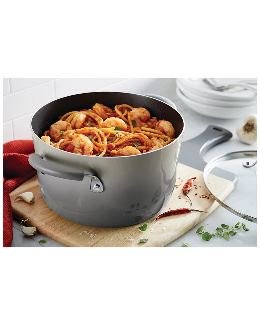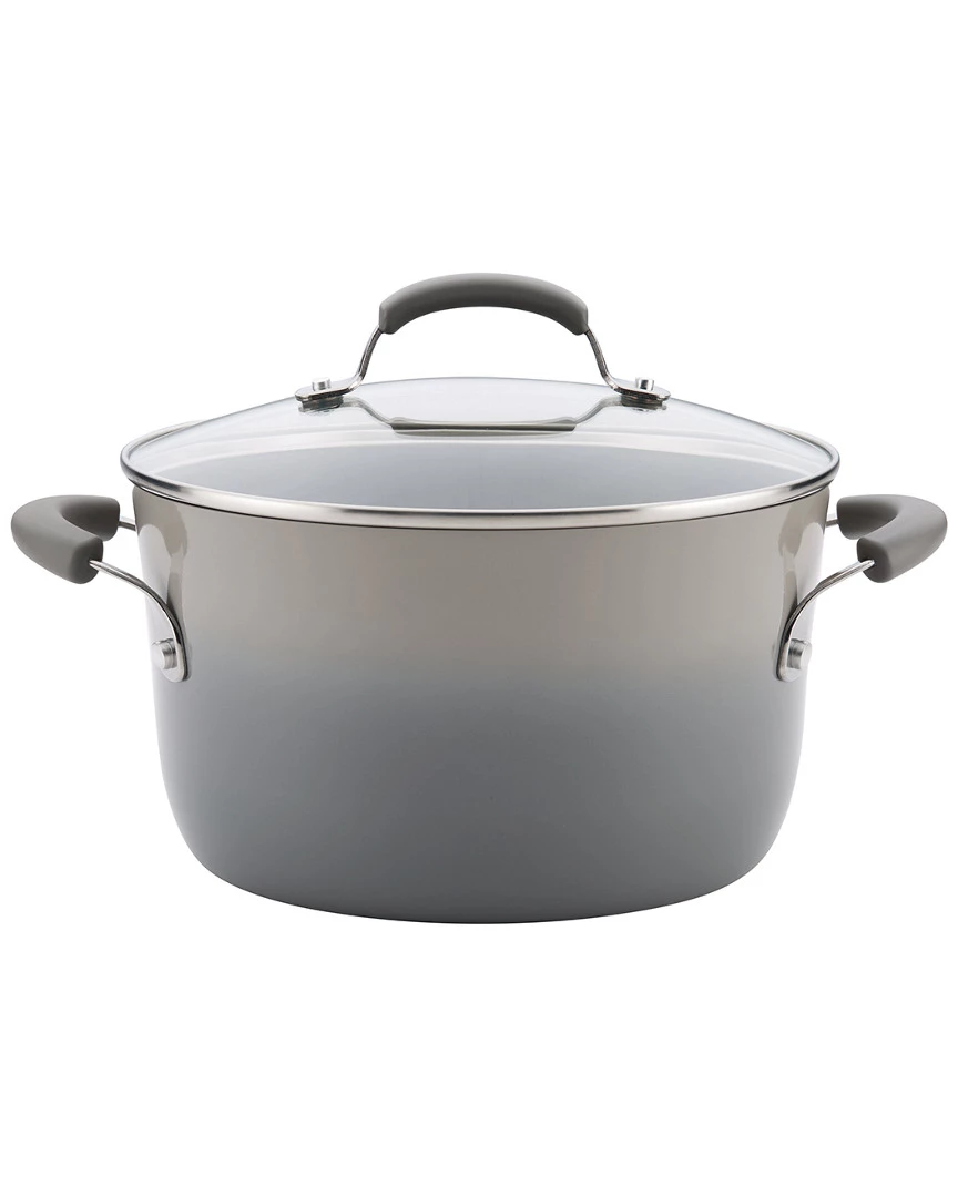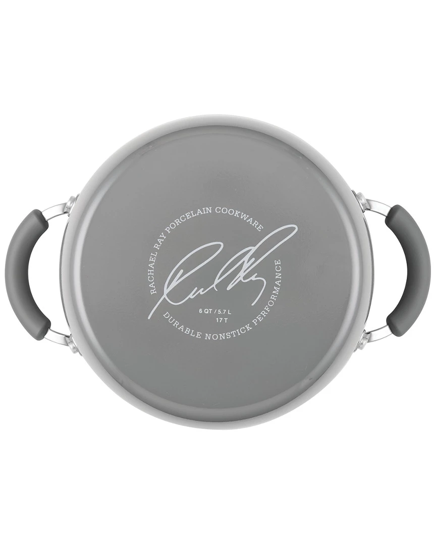 - Design details: One-pot wonder meals are in easy everyday reach with the Rachael Ray Classic Brights Hard Enamel Nonstick 6-Quart Covered Stockpot; This versatile cookware comes in the perfect size to handle family-sized one-pot meals like Rach’s Sausage and Shrimp One-Pot. Combining superior performance, fun contemporary color and durable materials, this stockpot is ideal for Rachael’s Steakhouse Chili Pot. The pot’s sturdy construction promotes even heating, helping to reduce hot spots that can burn foods, and the two-tone bold enamel exterior shows plenty of stylish kitchen personality. A durable nonstick interior provides superior food release and makes cleanup a breeze. Oven safe to 350 F, the stockpot’s comfortable grippy handls are double riveted for extra strength, while a shatter-resistant, tempered glass lid seals in heat and moisture even as you watch ingredients cook up. ; Discover a fun and stylish stockpot that makes one-pot meals everyday easy with the bold and contemporary Rachael Ray Classic Brights Hard Enamel Nonstick 6-Quart Covered Stockpot
