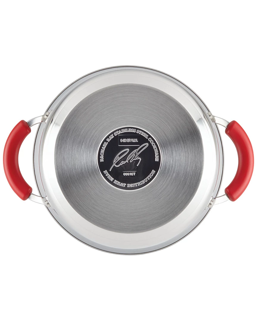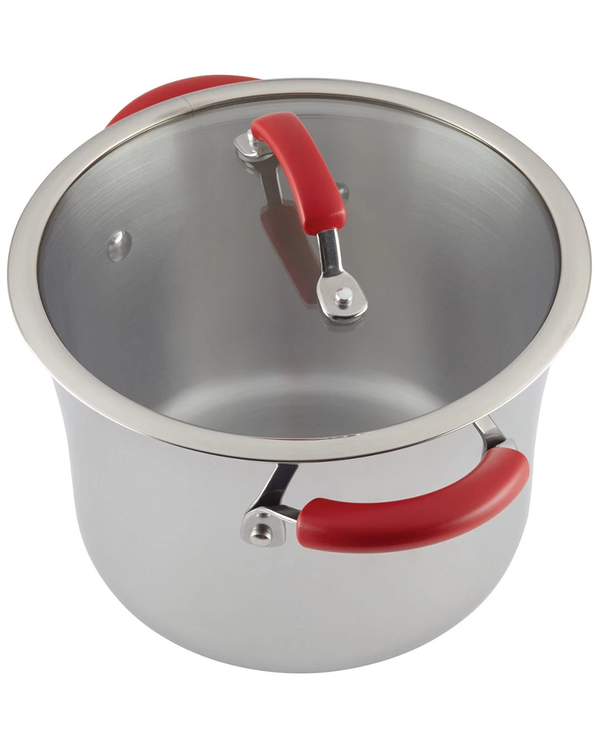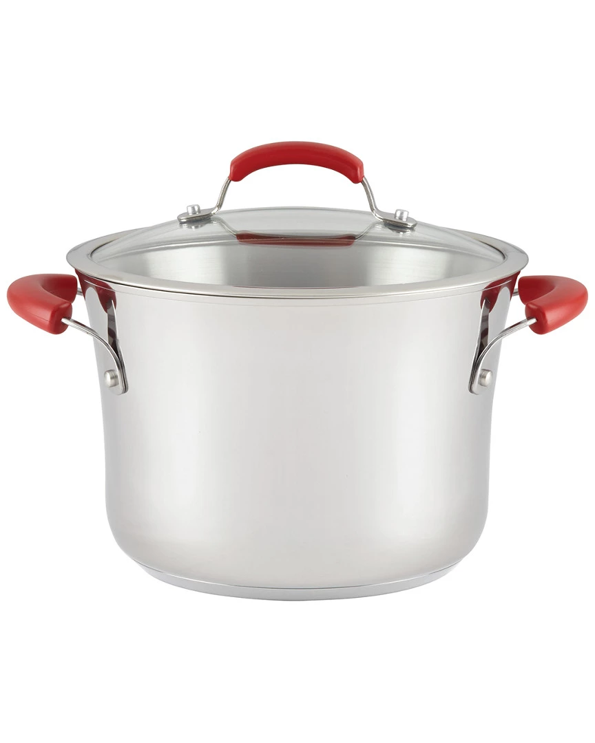- Design details: From the striking cookware exterior to the colorful handles, this Rachael Ray Classic Brights Stainless Steel 6.5-Quart Covered Stockpot is sure to be standard kitchen stock for soups, pastas, stews and more; Count on Rachael Ray to design and deliver cookware thats as practical as it is stylish. This stockpot’s professional-quality stainless construction is exceptionally durable, and the polished exterior looks great on the stove. As for cooking performance, the induction-suitable stockpot base boasts a thick layer of aluminum that is fully encapsulated in stainless steel for fast, even heating in a pan that demands it. And the grippy rubberized handles are double riveted for added strength and provide comfortable grasp even with a full pot; Besides stoups and stews, stockpot is the perfect kitchenware piece for cooking crushed tomatoes with herbs for a homemade pasta sauce and preparing a double batch of Rachs Cranberry Walnut Rice. The shatter-resistant glass lid allows cooking to be monitored while locking in heat and moisture. Stockpot is oven safe to 350F and dishwasher safe for easy cleanup. Finally, the pot complements many other pieces in the Rachael Ray kitchenware collection; Make a polished statement when making stocks and soups in the kitchen with the Rachael Ray Classic Brights Stainless Steel 6.5-Quart Covered Stockpot that looks as good as it cooks