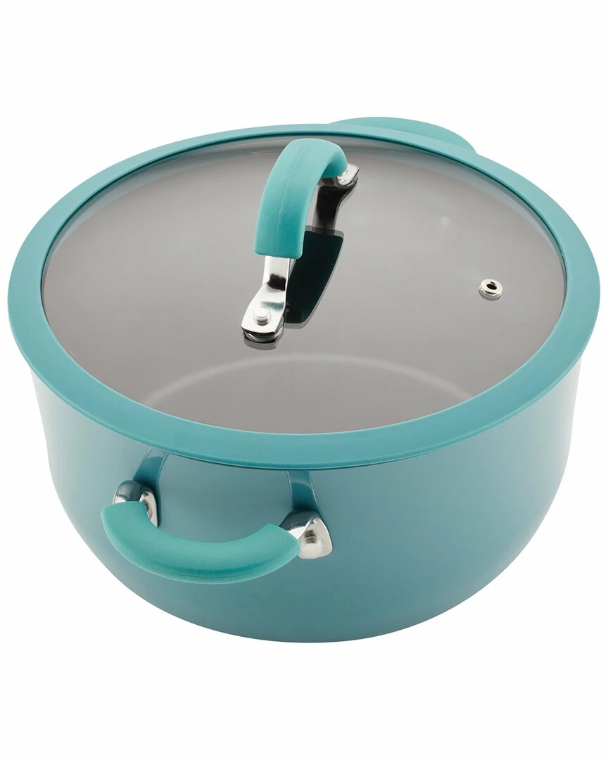 - Level up your kitchen with Cook + Create Nonstick Cookware from Rachael Ray. This set of fun and super-functional pots and pans is crafted from thicker gauge aluminum for a luxe and sturdy feel and reliable stovetop performance that heats up quickly and evenly. The on-trend, contemporary design features a tulip-shaped profile for bigger and wider cooking surfaces, and the sleek and stylish silicone-rimmed lids provide a soft landing to lock in heat and flavor for optimum performance with flair. Want even more convenience? The pots and pans also feature nonstick on the inside rivets, for super-smooth stirring and easy-clean cooking surfaces that don’t get food build-up around the handle attachments. A new, triple layer nonstick provides the ultimate in scratch resistance and durability, and all of the cookware pieces are oven safe to 400F. For even more of what you want (and less of what you don’t), reach for Rachael Ray Cook + Create cookware and uplevel your mealtime moments with performance and flair.