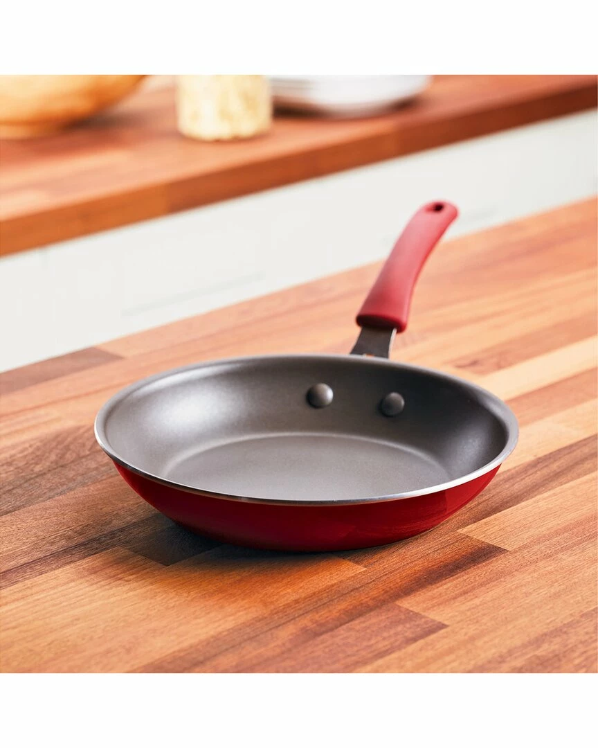 - Level up your kitchen with Cook + Create Nonstick Cookware from Rachael Ray. This versatile and super-functional nonstick 10-inch frying pan s is crafted from thicker gauge aluminum for a luxe and sturdy feel and reliable stovetop performance that heats up quickly and evenly. The on-trend, contemporary design features a tulip-shaped profile for bigger and wider cooking surfaces and optimum frypan performance with flair. Want even more convenience? The skillet also features nonstick on the inside rivets, for super-smooth stirring and easy-clean cooking surfaces that don’t get food build-up around the handle attachments. A new, triple layer nonstick provides the ultimate in scratch resistance and durability, and the frying pan is oven safe to 400F. For even more of what you want (and less of what you don’t), reach for Rachael Ray Cook + Create cookware and uplevel your mealtime moments with performance and flair.