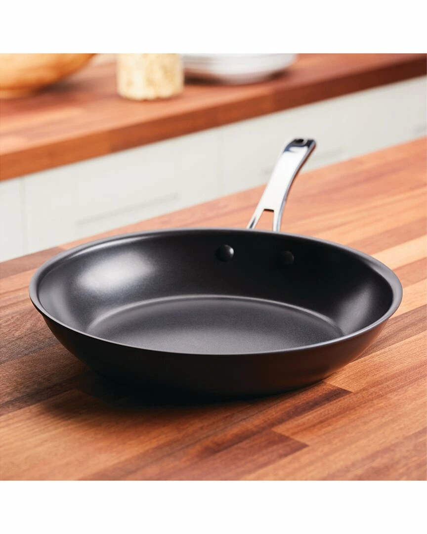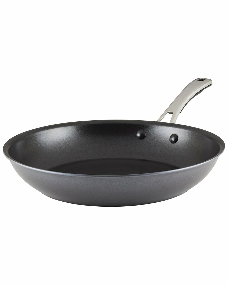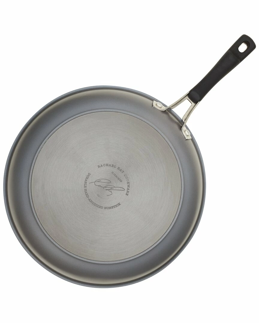 - Level up your kitchen with the Cook + Create Hard Anodized 12.5-Inch Nonstick Frying Pan from Rachael Ray. This fun and super-functional fry pan is crafted from thicker gauge hard-anodized aluminum for a luxe, sturdy feel, and reliable stovetop performance that heats up quickly and evenly. The sleek, on-trend contemporary design features a wider cooking surface for big meal making, and nonstick rivets deliver super smooth stirring and an easy-to-cleanup cooking surface that doesnt allow for food build-up around the handle attachment. Want even more convenience? The new triple layer nonstick provides the ultimate performance in scratch resistance and durability, and to top it all off, this versatile frying pan is oven safe to 400F to handle a wide range of recipes. For even more of what you want (and less of what you don’t), reach for Rachael Ray Cook + Create cookware and uplevel your mealtime moments with performance and flair.