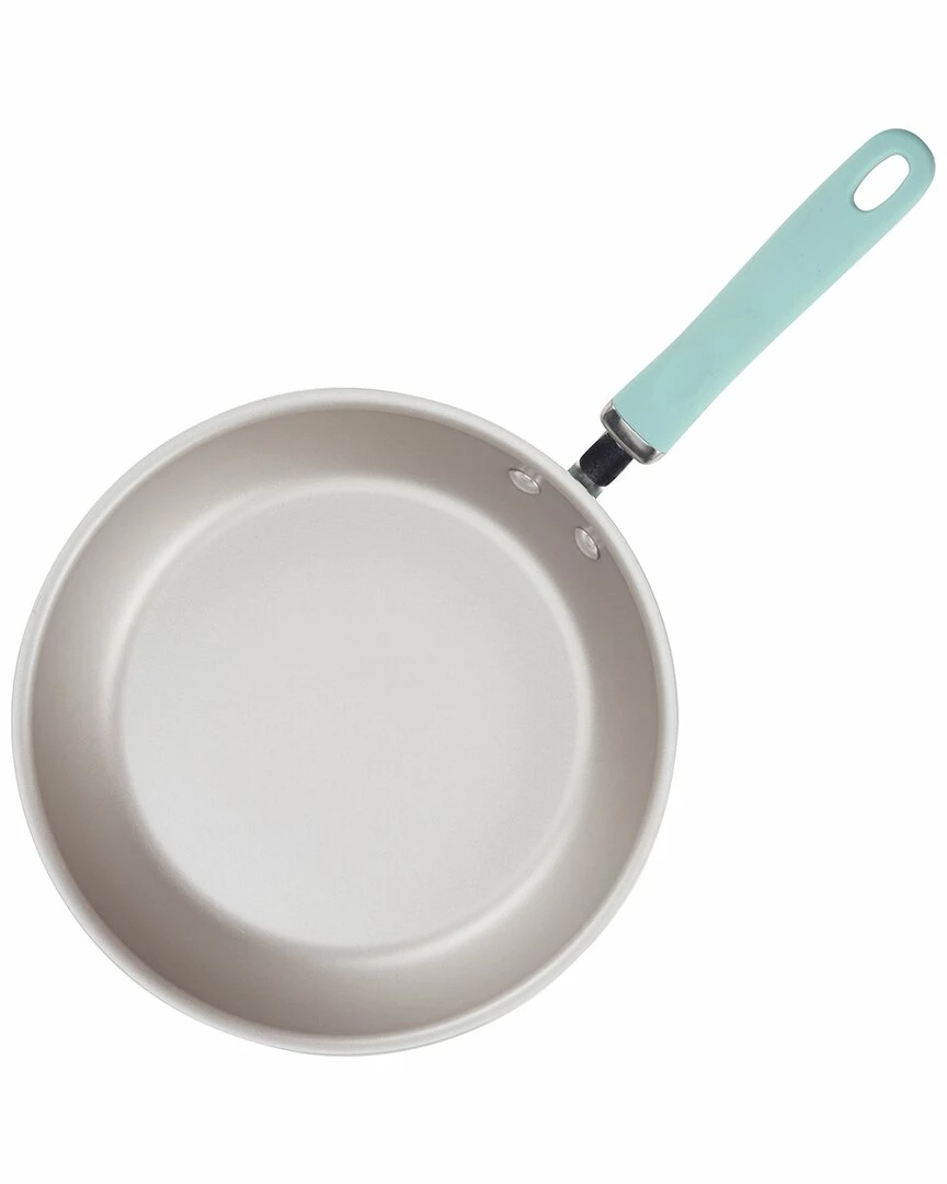 - Featuring vibrant, shimmering color combined with value-driven functionality, this indispensable fry pan brings on Rachael’s always-reliable performance with durable aluminum construction for ultra-even heating and browning. Made with higher sides for an enhanced cooking surface, this smart skillet features PlatinumShield Technology silver nonstick reinforced to be 9X harder than titanium for effortless food release of the stickiest recipes like Rach’s Spinach-Artichoke Cheesy Tortellini or her Sticky Orange Chicken with Herbs.