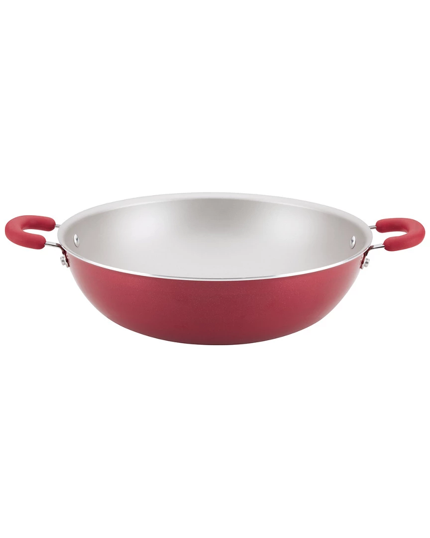 - Design details: Get ready to wok and roll with the radiant and solution-oriented Rachael Ray Create Delicious Aluminum Nonstick 14.25-Inch Wok; Featuring vibrant, shimmering color combined with value-driven functionality, this versatile wok is perfect for Cashew Chicken or Kung Pao Shrimp and features durable aluminum construction for ultra-even heating. The enhanced PlatinumShield and trade; Technology silver nonstick is reinforced to be 9 times harder than titanium for effortless food release of everything from stir fries to scrambled eggs to Rach’s Pineapple Ham Fried Rice; Colorful, double-riveted stainless steel and silicone handles provide comfort and control that’s oven safe to 400F, flared cookware rims make for easy pouring, and an induction-suitable stainless steel base provides strength, durability, and versatility to use the cookware on any stovetop. Plus, the pan is dishwasher safe for quick and easy cleanup; From dishwasher-safe convenience to the enhanced durability of PlatinumShield and trade; nonstick, reach for the easy brilliance of the Rachael Ray Create Delicious Aluminum Nonstick 14.25-Inch Wok and get ready to get your stir fry delish.