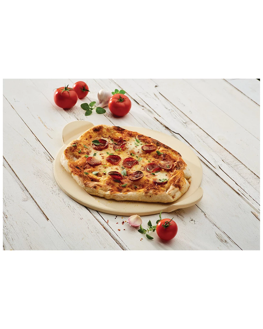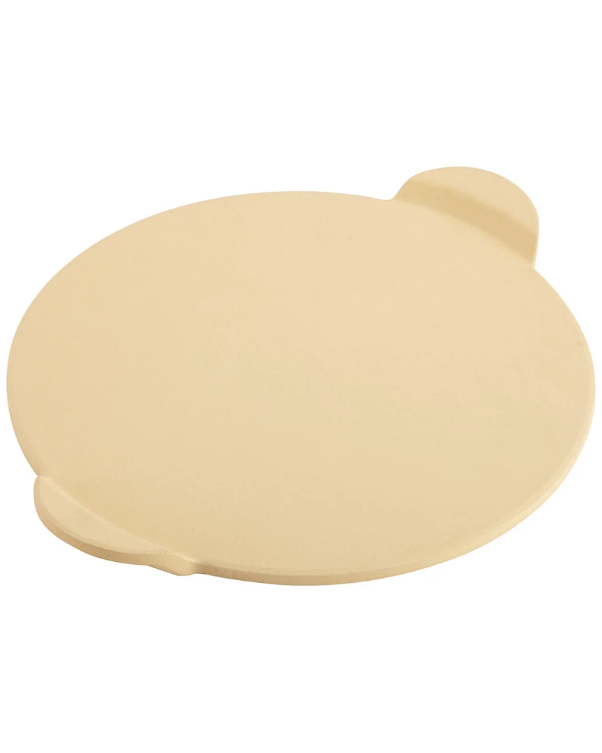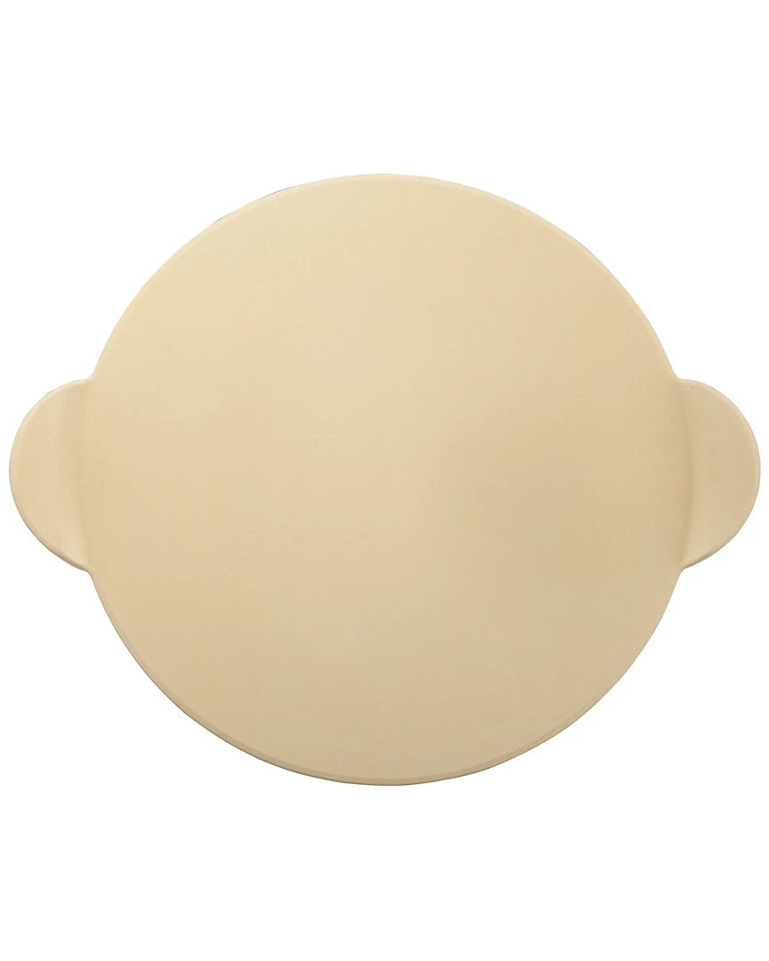 - Design details: Whole pie or sliced, pizzas perfected fresh from the oven or hot off the grill, with the Rachael Ray Cucina 13.5-Inch Round Cordierite Pizza Baking Stone; Make your own homemade pizza taste great and store-bought pizza taste better with this classic -inch-thick pizza stone from Rachael Ray. Cordierite is time-tested natural stone known for its durability, and its ability to absorb moisture, hold heat, and bake evenly. Simply heat the stone, sprinkle a pinch of cornmeal or flour on the surface, slide on your pie, then bake or grill up that delish, home-made golden-crusted pizza goodness. Best of all, the stone requires little in cleaning or care other than a brush and scrub with warm water. Then just let the stone air-dry and store it in your oven; This baking stone brings brick-oven-baked pizza cooking to the home oven and the grill. Heat resistant to 900 degrees F, the stone incorporates generously-sized handles into its design with plenty of space for potholders. Use it for calzones, for heating appetizers, even grilled paninisand it has a Rachael Ray Quality Assurance Guarantee. Partner this pizza lovers must-have with other Rachael Ray Cucina pantryware and serving tools to get the party started and keep it going, slice by slice; Turn your own oven into a brick-oven-style pizzeria making fresh, homemade `za easy as pie, with the Rachael Ray Cucina 13.5-Inch Round Cordierite Pizza Baking Stone