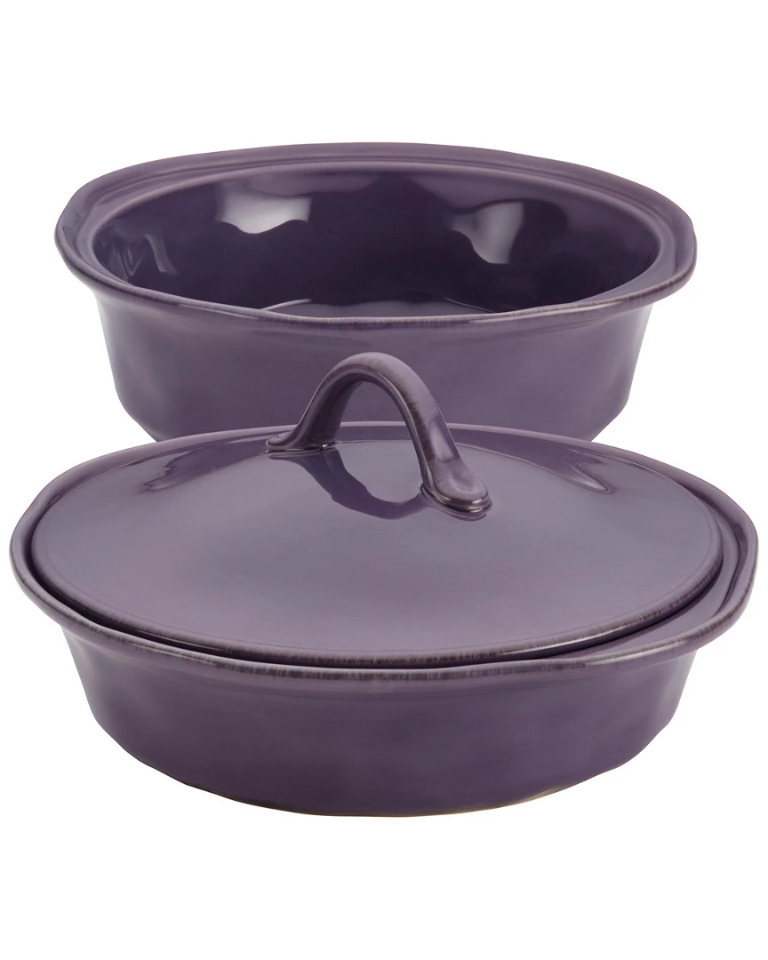 - Design details: With one convenient lid that fits two sturdy stoneware bakers, the warm Rachael Ray Cucina Stoneware 3-Piece Round Casserole & Lid Set makes baking and entertaining easy. crafted from durable, solid stoneware and glazed with warm, earthy color, the 1-1/2 quart baker and 2-quart baker can be used together in the oven to bake savory casseroles and side dishes. With their oven-to-table versatility, the combination baking and serving dishes are ideal for heating scrumptious artichoke crab dip in the microwave while spicy buffalo wings baste in raspberry chipotle sauce in the oven. The handsome round bakers fuse everyday functionality with rustic, relaxed style, and their classic flared contours cleverly incorporate comfortable, freeform handles. Oven safe to 500F, the baking dishes are also microwave, freezer and dishwasher safe. The sturdy baker set also matches stylish Rachael Ray Cucina dinnerware to bring a great look to kitchen and table, and partners perfectly with other bakeware and serveware in Rachaels Cucina collections. ; Bake and serve savory party foods and luscious side dishes with the appealing Rachael Ray Cucina Stoneware 3-Piece Round Casserole & Lid Set