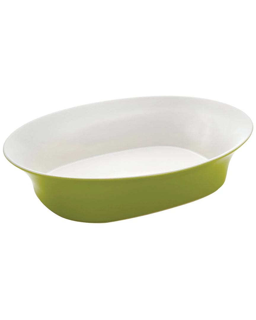 - Design details: Showcase delish dishes in the lively Rachael Ray Dinnerware Round & Square 14-Inch Stoneware Oval Serving Bowl. Featuring contemporary shapes that fuse traditional circular rims onto modern, square-cornered bases, the Round & Square collection is crafted from durable stoneware that holds heat well, so foods and beverages stay warmer longer. With gleaming white stoneware and bright color that make a bold contrasting statement between the bowls inside and outside, its ideal for serving succulent roasts, yummy pasta dishes or festive fruit salads. Designed to match dinnerware and other serveware in the collection that display distinctive variations of the color theme, the bowl provides a cohesive look when combined with other Round & Square items. Microwave and dishwasher safe, the oval serving bowl offers easy cleanup after memorable meals. ; Brighten the tabletop by serving yummy foods in the vibrant Rachael Ray Dinnerware Round & Square 14-Inch Stoneware Oval Serving Bowl