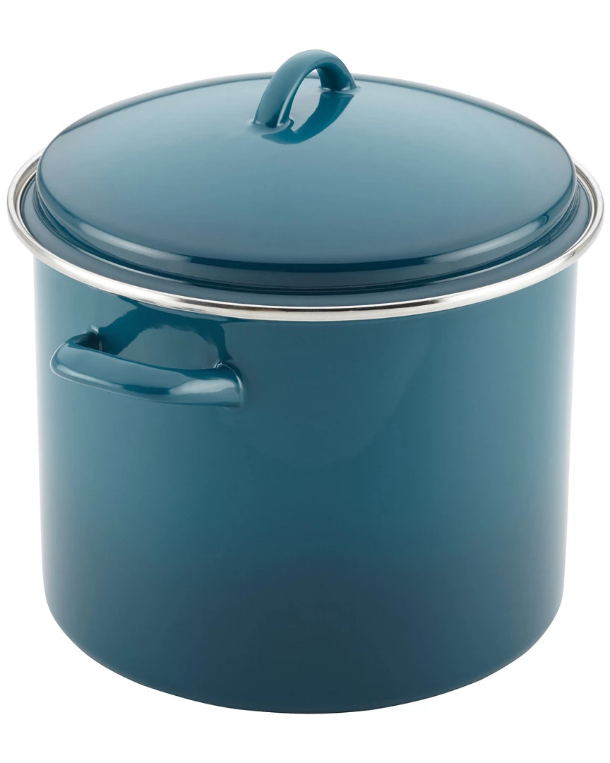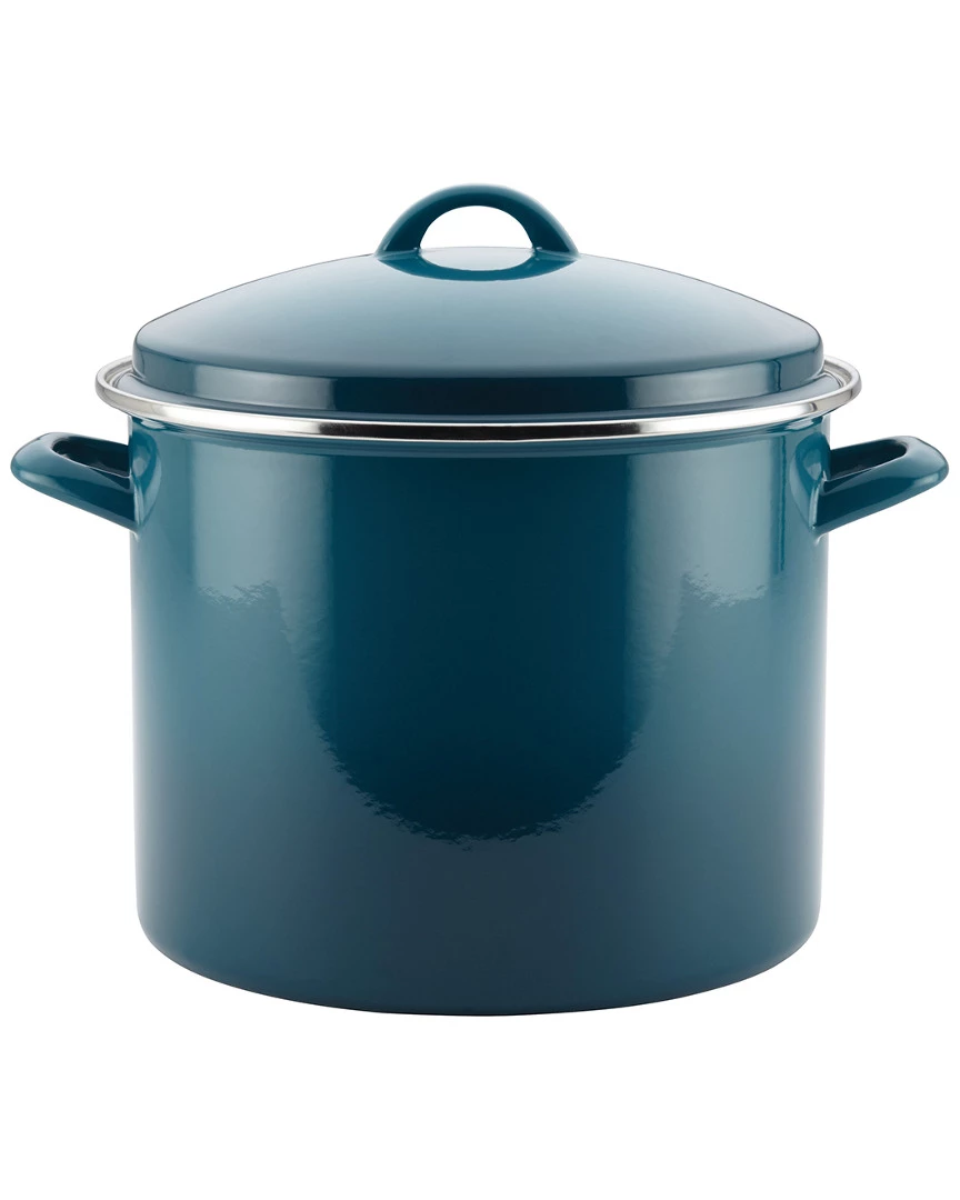 - Design details: Stew away in the kitchen with ease and style, when cooking soups, stocks, stoups and more, using the colorful, large-capacity Rachael Ray Enamel on Steel 12-Quart Covered Stockpot. Rachael Ray(r) is all about mealmaking enjoyment with fun and without fuss, and her enamel-on-steel stockpot fits the bill for all your big-batch cooking. Designed for durability, this large pot features sturdy steel construction made to resists dents and dings. A beautiful stainless steel rim helps protect the pots edge against denting from utensils. The vibrantly-colorful enamel exterior is stain resistant and easy to clean, and adds a pop of welcome color to the kitchen. Leave it to Rachael Ray(r) to make the simple stockpot a kitchen workhorse. The color on this large pot is gorgeous, and the generous loop handles make it easier to move the pot between kitchen stations, even when full of Rachaels Mexican Chorizo and Turkey Chili. A coordinating lid snugly seals in heat and moisture. Oven safe to 400F, this stockpot coordinates well with many other pieces in Rachael’s cookware and bakeware collections. Prepare delicious, fuss-free family meals with the durable and colorful Rachael Ray Enamel on Steel 12-Quart Covered Stockpot.