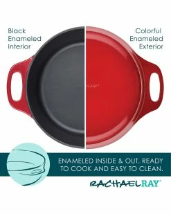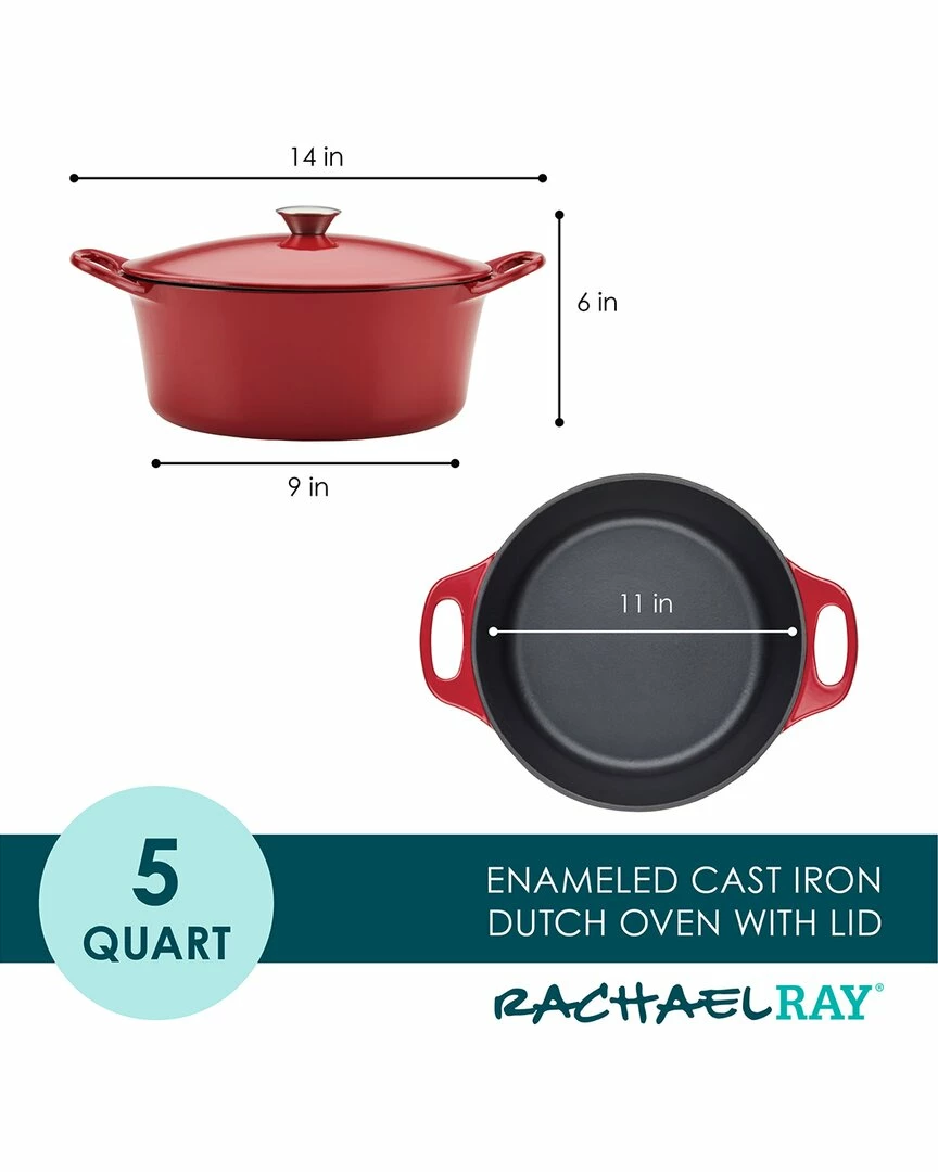 - Go for deep, delicious flavors, incredible sears, and one-pot braises with this 5-quart Rachael Ray Enameled Cast Iron Dutch Oven Casserole Pot. Durable cast iron delivers steady, long-lasting heat for stove-to-oven family favorites, and can be used for baking, too! The superior enamel surface inside and out means easy cleaning with no pre-seasoning necessary, and is engineered to prevent enamel from chipping. Suitable for all stovetops including induction, this cast iron cooking pot is perfect for meals that start on the stove and finish in the oven, where the Dutch oven is heat safe to 500F. For oven-to-table style and superior performance for your next one-pot masterpiece, reach for the Rachael Ray Enameled Cast Iron Dutch Oven Casserole Pot and get cooking.