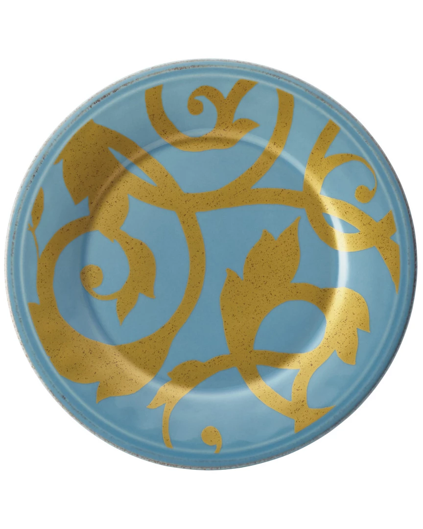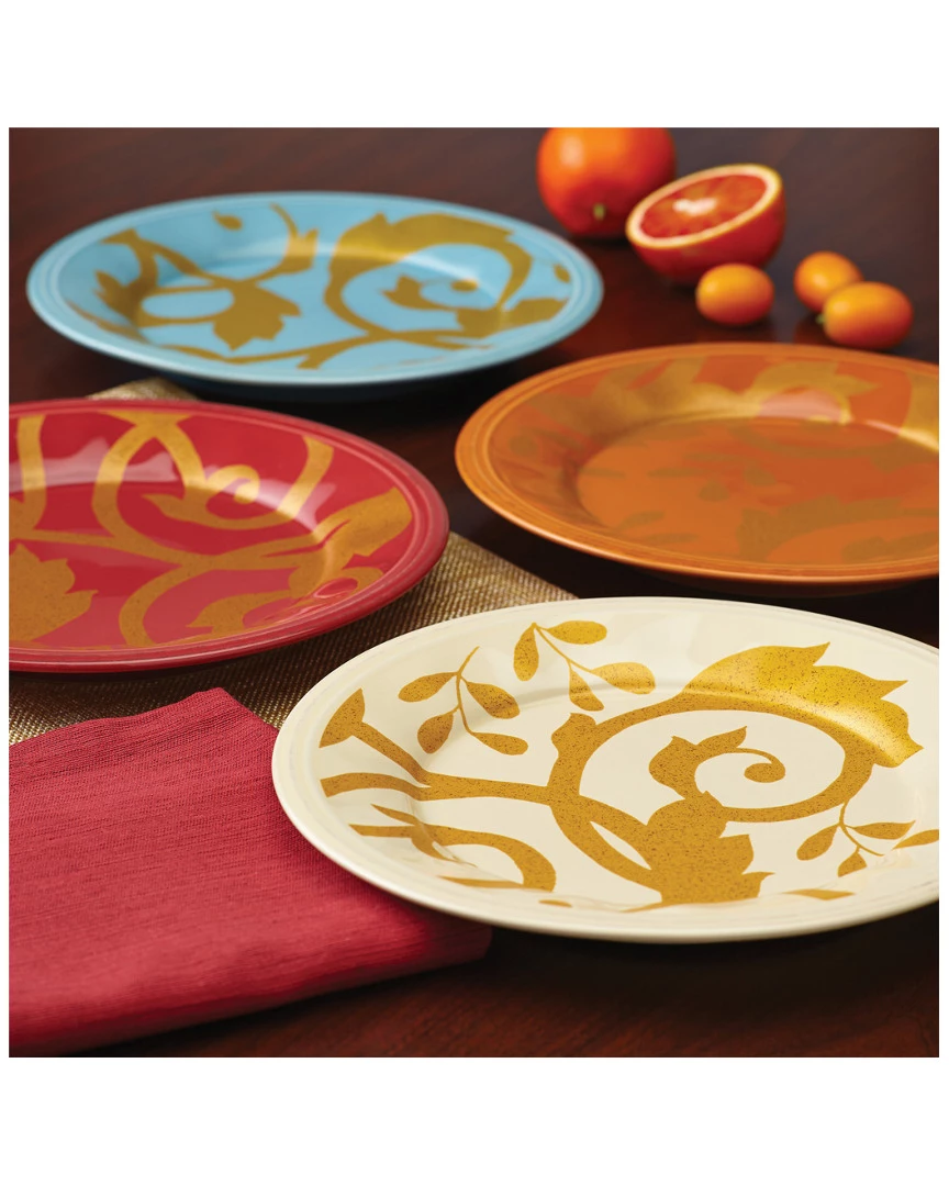 - Set a welcoming table for friends and family with the Rachael Ray Dinnerware Gold Scroll 4-Piece Salad Plate Set. The enchanting Gold Scroll collection was inspired by Rachaels appreciation for timeless, durable stoneware design and features handmade texture and rich, decorative color enhanced by tapestry-like patterns. Distinctive gold scrollwork provides an artistic touch when appetizing foods are savored during relaxed gatherings and festive occasions
