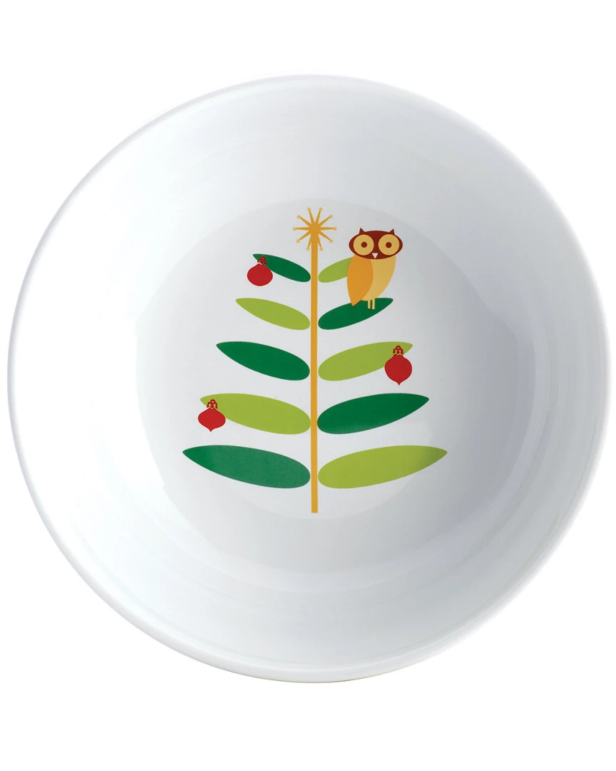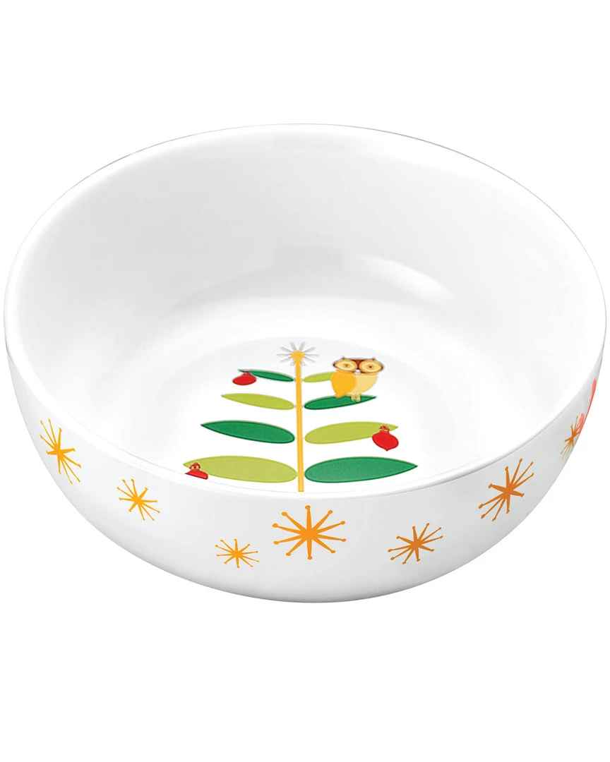 - Design details: During the holiday season, party invitations are plentiful. A great way to make sure your festive soiree stands out from the rest is with Holiday Hoot serveware. This serving bowl features the adorable Little Hoot owl from the everyday pattern, and gives it a holiday twist, perching Little Hoot on a decorated tree. This is a great piece thats perfect for serving up everything from warm soup to fun finger foods like cheesesteak egg rolls; Holiday Hoot serveware from Rachael Ray, is the perfect way to entertain family and friends with a bit of extra festive flair. This serving bowl is sure to hold enough finger foods and hors doeuvres for a large gathering of guests, making entertaining easier. The bowl features Holiday Hoot in a contemporary design of a decorated tree and bright stars on the outside of the bowl for a modern twist on traditional holiday serveware. This serving bowl can be mixed and matched with the other Holiday Hoot pieces in the collection and conveniently its freezer, dishwasher and microwave safe. Its also oven safe to 350F and nonporous so it wont interact with the food thats being served