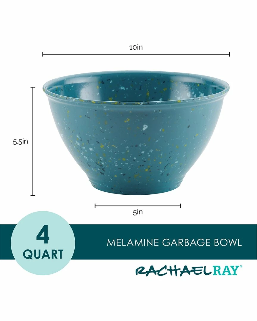 - Keeping the kitchen tidy during mealtime prep is easier with Rachael Rays garbage bowl by your side. Reduce trips and pauses while cooking by tossing unwanted scraps into the colorful bowl with a rubberized, anti-slip base. Once done, easily toss veggie clippings, potato peels or cucumber shavings onto the compost before loading the garbage bowl into the dishwasher for a quick and easy clean.