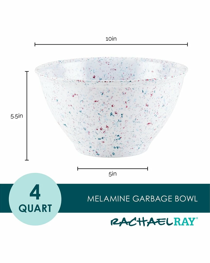 - Create delicious meals while keeping the kitchen tidy with the countertop assistance of the Rachael Ray Melamine Garbage Bowl. Use this durably built BPA-free melamine bowl to collect compost worthy clippings while prepping breakfast, lunch, or dinner, allowing for less time spent cleaning. The fun-to-use, versatile bowl features a rubberized base to help it stay put when used as a mixing bowl, fruit bowl, or serving bowl. In addition to being highly versatile, this multipurpose bowl is conveniently top-rack dishwasher safe for easy cleanup.