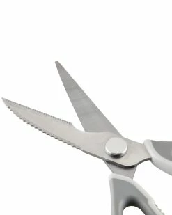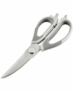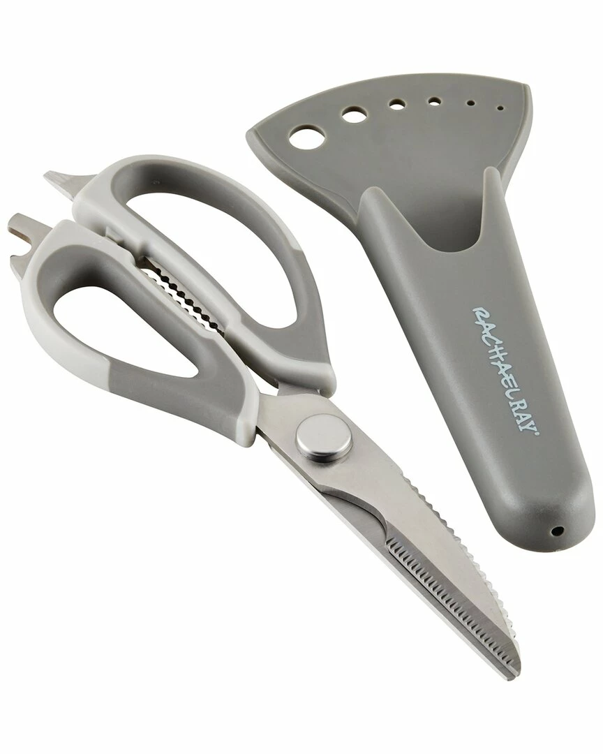 - Snip, trim, slice, and strip with these multipurpose kitchen shears from Rachael Ray. A practical design make these prep scissors ideal for a wide range of kitchen tasks, from trimming poultry and meats to cutting vegetables, leafy greens, and even thin sheets of dough or parchment paper. An amazing protective sheath makes for magnet-easy storage on appliances or other steel kitchen surfaces, and the sheath features six graduated stripping holes for quickly removing thyme, rosemary, cilantro, and kale leaves from their stems. Japanese stainless steel blades stay ultrasharp for effortless cutting, and the comfy, grippy handles are topped with a convenient bottle opener and screwdriver. The heavy duty shears separate easily into two pieces for use as a fish scaler or scraper and pop right in the dishwasher for easy, spotless cleanup. For an incredible multi tool you’ll keep finding endless uses for in the kitchen, reach for the stylish and versatille Rachael Ray Professional Multi Shear Kitchen Scisoors with Herb Stripper and Sheath.