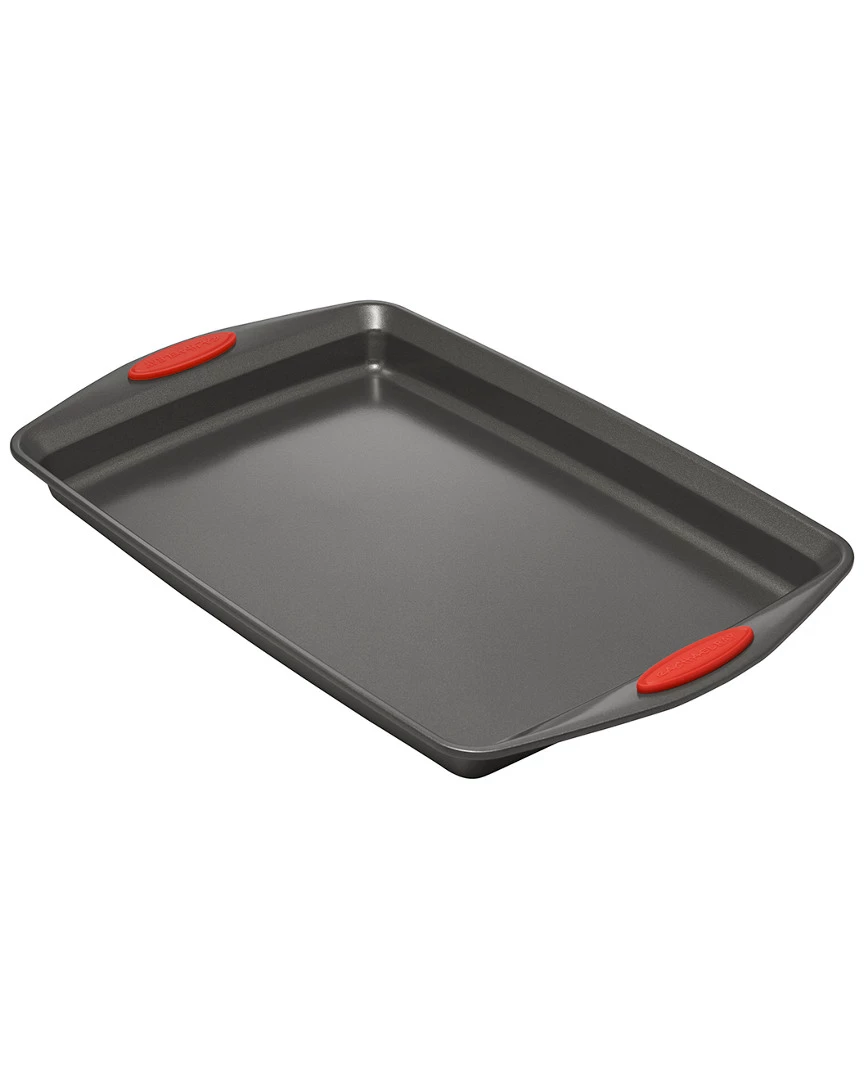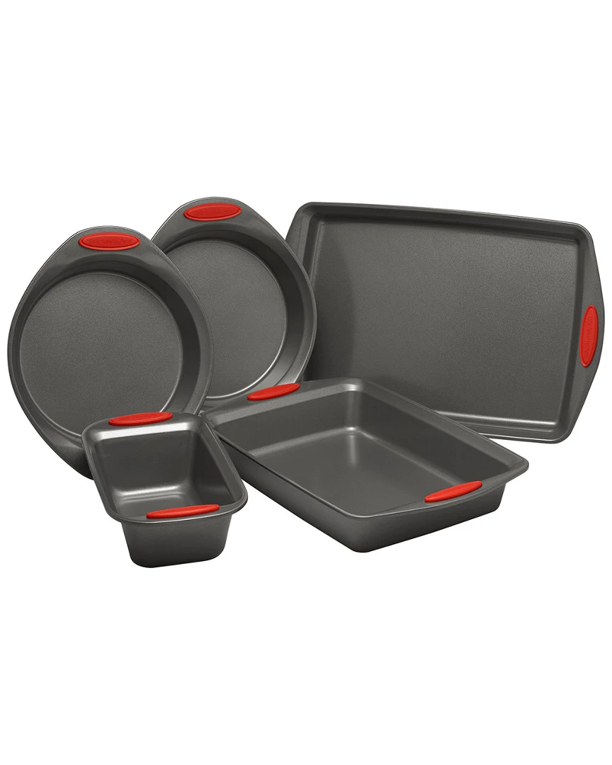 - Design details: Take the guesswork out of assembling an essential bakeware collection with the versatile Rachael Ray Yum-o! Nonstick 5-Piece Oven Lovin Bakeware Set. ; Featuring five baking pans in four popular sizes, this practical set can handle cakes, lasagna, meatloaf, roasted potatoes, brownies and more. Made from heavy gauge steel, the pans resist warping and feature long-lasting nonstick that provides excellent food and baked good release with easy cleanup. Enjoy the convenience of a bakeware set that helps create everything from Rachael’s Eggplant Parm and Four Cheese Baked Pasta to her Almond Joy Layer Cake or Espresso Brownies. ; The pans’ bold-colored, extra-wide grippy handles offer a confident grasp when pulling items from the oven, and they are oven safe to 500F. As an added bonus, a portion of the proceeds from this purchase goes to Yum-o!, Rachael’s nonprofit organization that helps kids and their parents develop healthy relationships with food and cooking. These versatile baking pans are the perfect complement to many other pieces in Rachael’s bakeware and cookware collections that always spell fun in the kitchen; Turn up the heat and bake some excitement – with the Rachael Ray Yum-o! Nonstick Bakeware 5-Piece Oven Lovin Bakeware Set